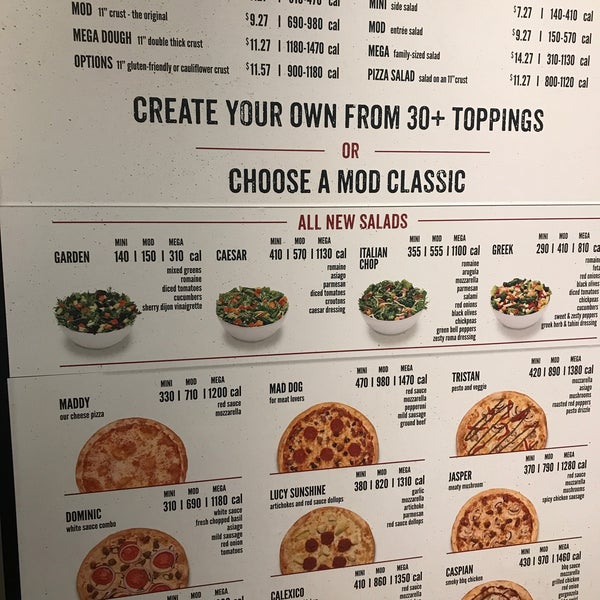 Pizza dough artichoke hearts fresh mozzarella fresh tomatoes pizza sauce. Build your own pizza or salad or order one of MODs classics. What is MOD Pizza crust made of.